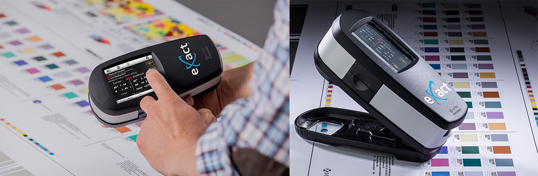 使用 eXact 的精準匹配功能,印刷機長可以在色彩變化顯現(xiàn)之前,更加輕松地保持印張油墨顏色的一致。在印刷機的運行過程中,僅需單擊一下,操作者就可以看到密度信息以及調(diào)節(jié)油墨的建議,以此實現(xiàn)精準匹配。整合多個 Pantone 色庫,為精確測量專色提供了輕松的方式。